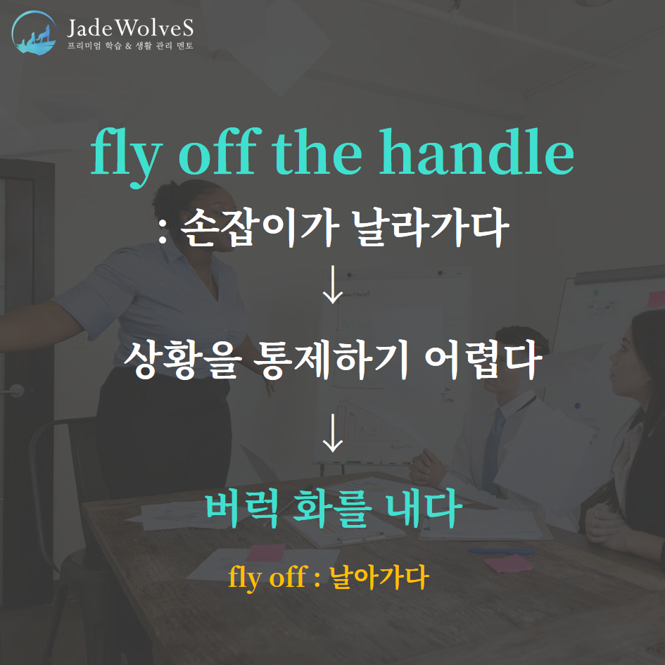 1) fly off the handle : "상황을 통제하기 어렵다"라고 해서 "버럭 화를 내다"라는 의미로 사용됩니다.