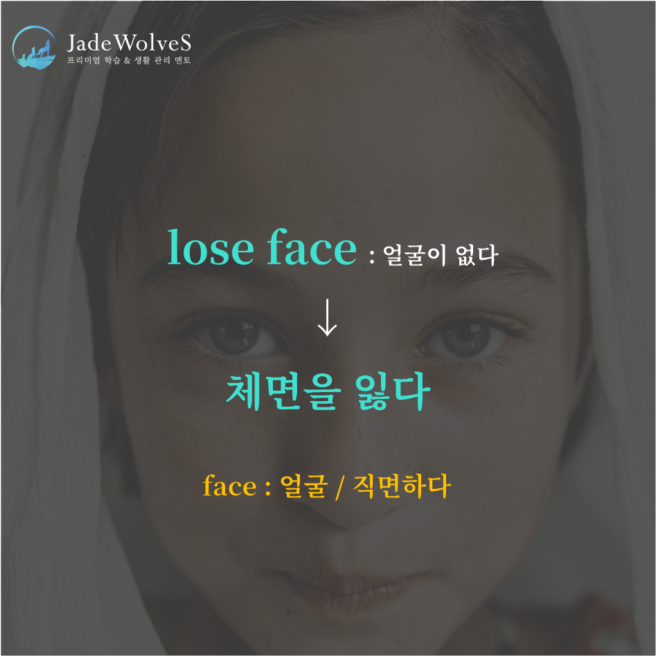 1) lose face : "얼굴이 없다"라고 해서 "체면을 잃다"라는 의미로 사용됩니다.