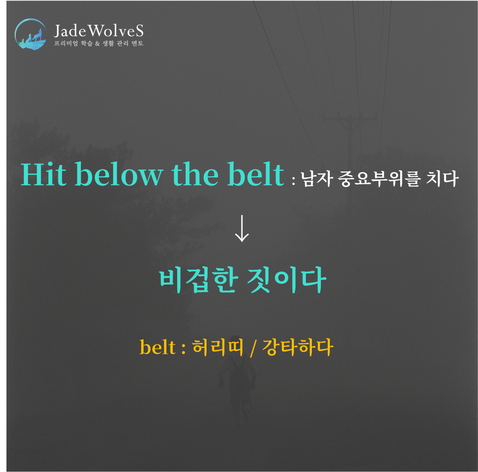 2) hit below the belt : "남자 중요부위를 치다"라고 해서 "비겁한 짓이다"라는 의미로 사용됩니다.