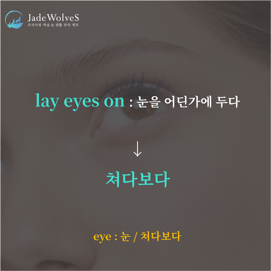 1) lay eyes on : "눈을 어딘가에 두다"라고 해서 "쳐다보다"라는 의미로 사용됩니다.