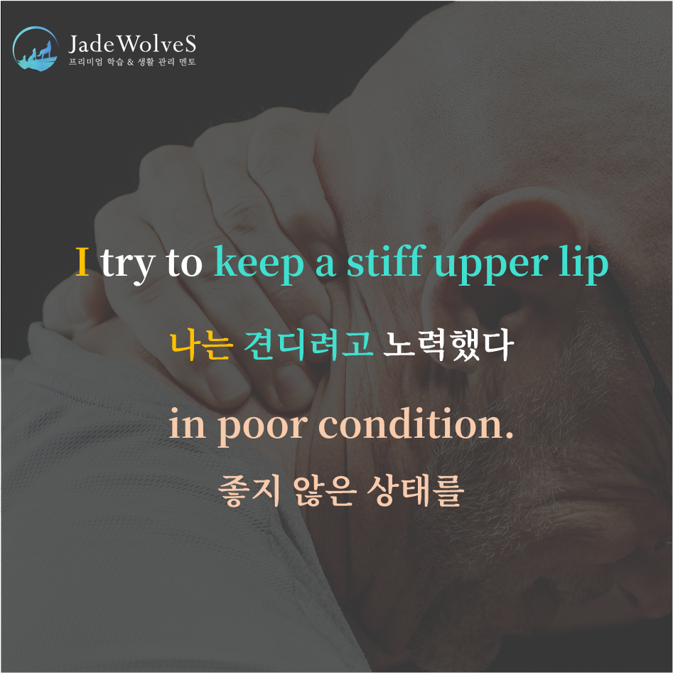 2) keep a stiff upper lip : "입술을 깨물다"라고 해서 "견디다"라는 의미로 사용됩니다.