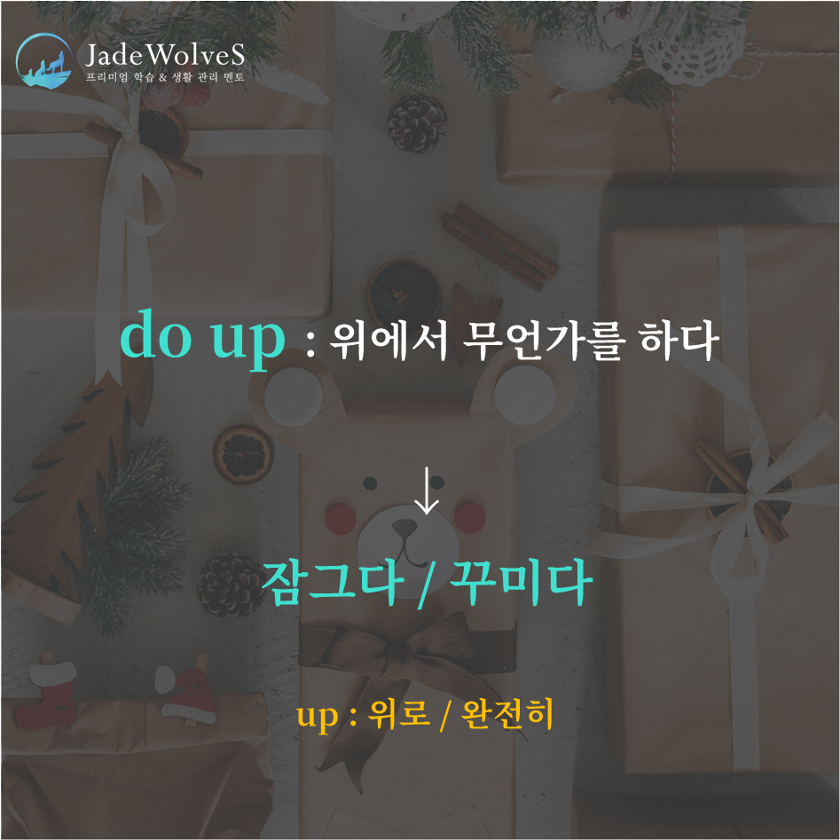 2) do up : "위에서 무언가를 하다"라고 해서 "잠그다 / 꾸미다"라는 의미로 사용됩니다.