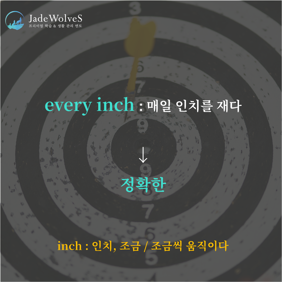 1) every inch : "매일 인치를 재다"라고 해서 "정확한"이라는 의미로 사용됩니다.