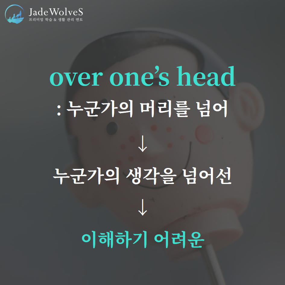 2) over one's head : "누군가의 머리를 넘어"라고 해서 "이해하기 어려운"이라는 의미로 사용됩니다.