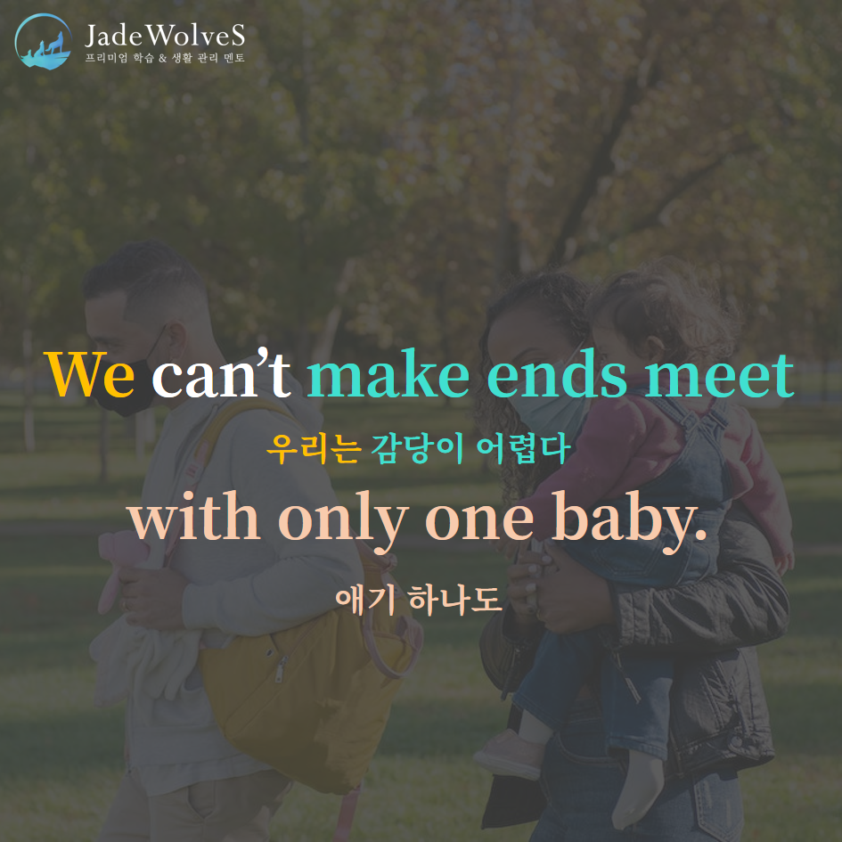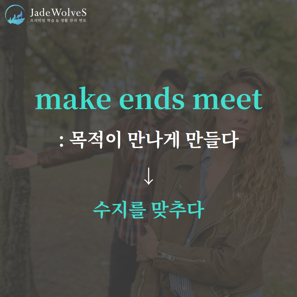 2) make ends meet: "목적이 만나게 하다"라고 해서 "수지를 맞추다"라는 의미로 사용됩니다.