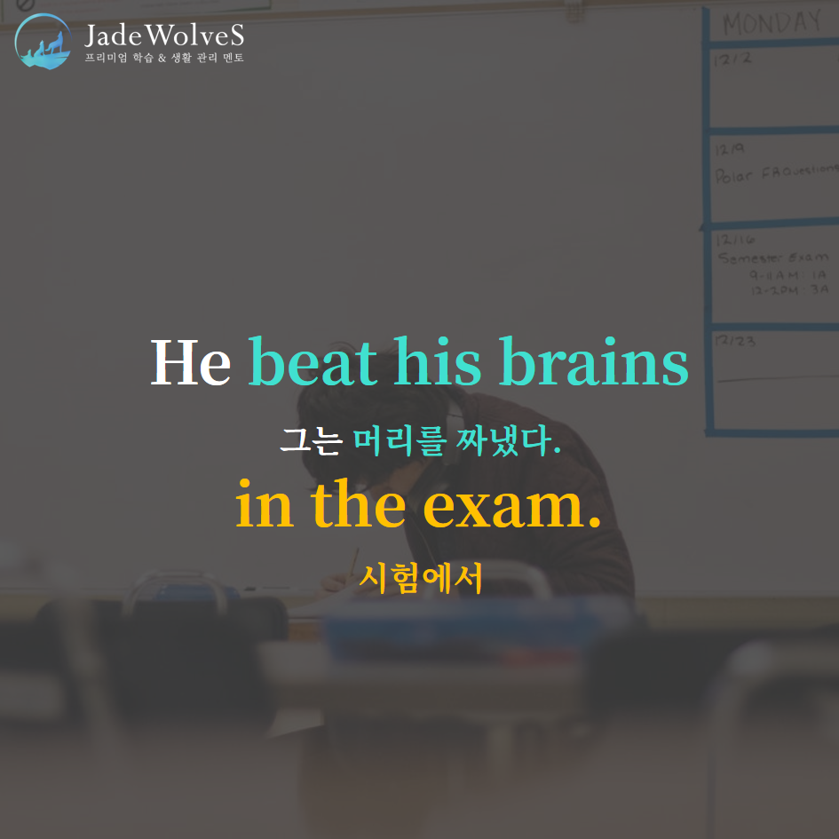 1) beat one's brains : "누군가의 머리를 치다"라고 해서 "깊이 생각하다, 머리를 짜내다"라는 의미로 사용됩니다.