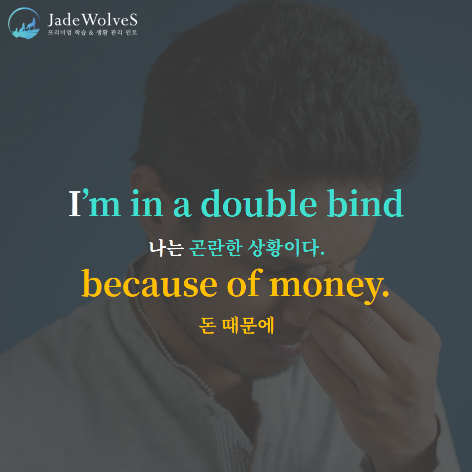 2) be in a double blind : "두 가지에 묶이다"라고 해서 "곤란한 상황에 빠지다"라는 의미로 사용됩니다.