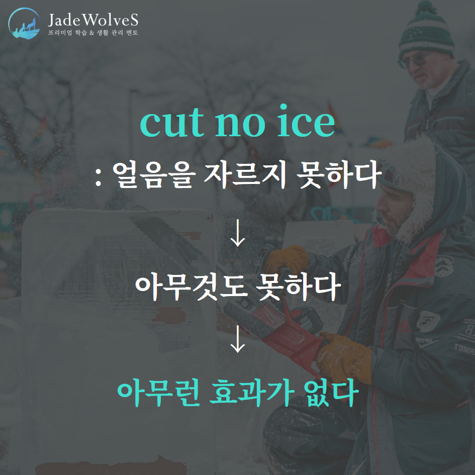 2) cut no ice : "얼음을 자르지 못하다"라고 해서 "아무런 효과가 없다"라는 의미로 사용됩니다.