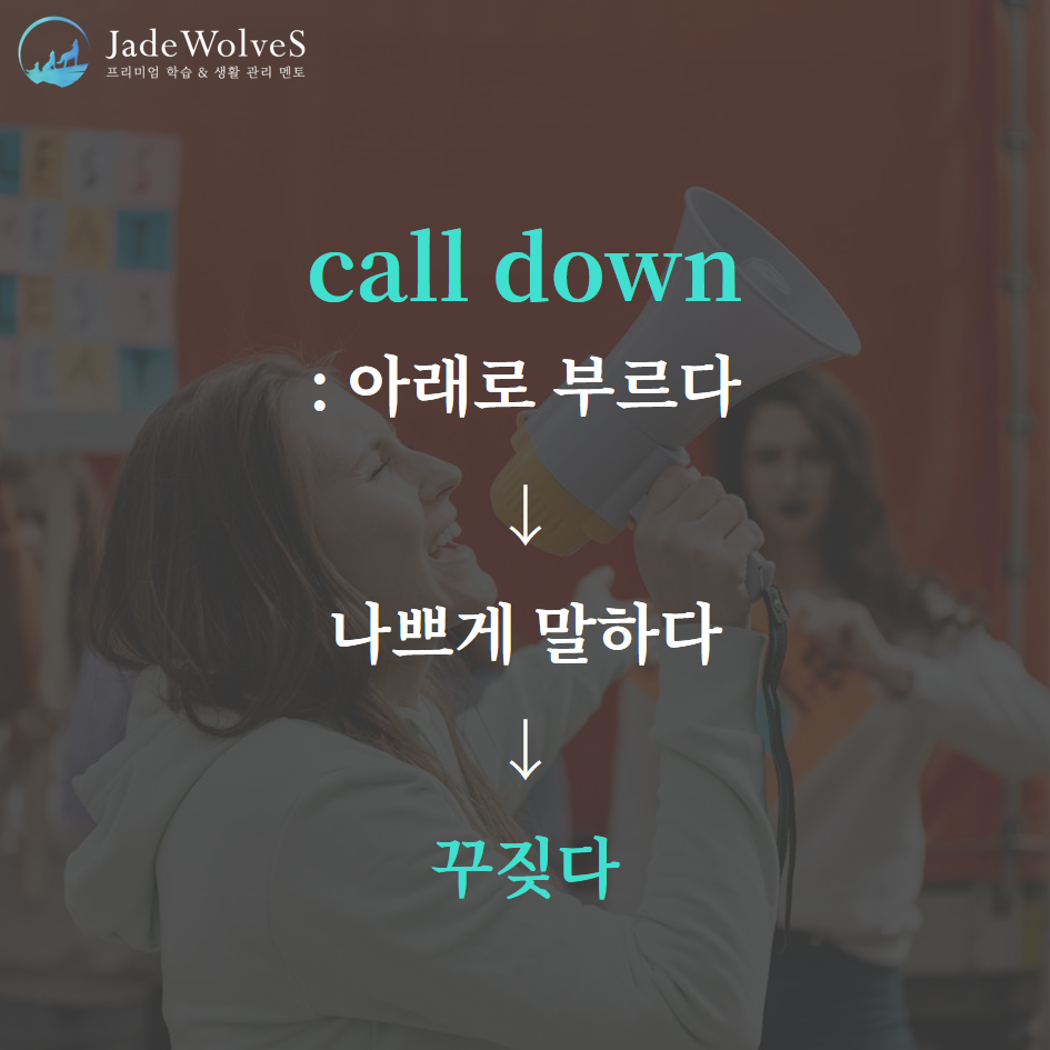 1) call down : "아래로 부르다"라고 해서 "꾸짖다"라는 의미로 사용됩니다.