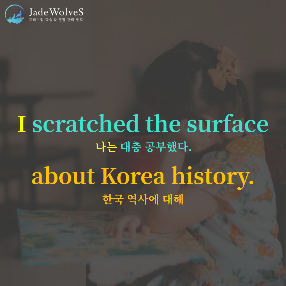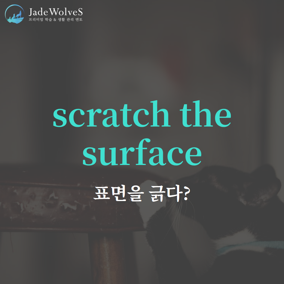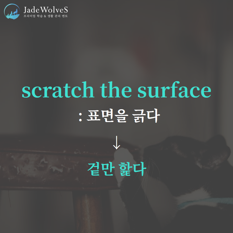 2) scratch the surface: "표면을 긁다"라고 해서 "겉만 핥다"라는 의미로 사용됩니다.