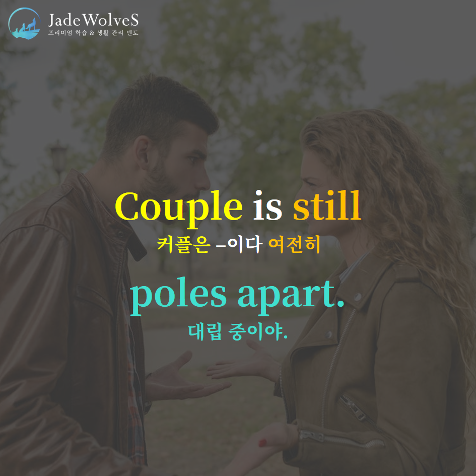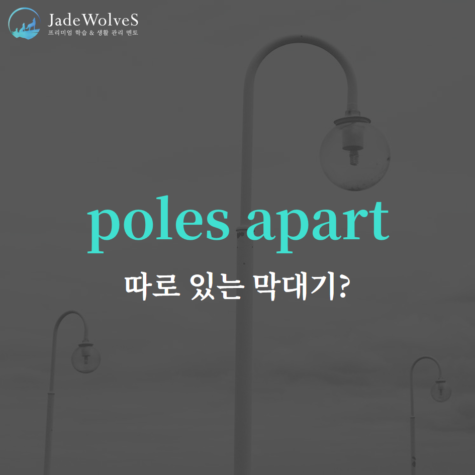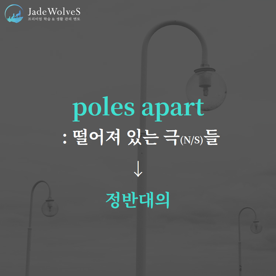 1) poles apart : "떨어져 있는 극(N/S)들"이라고 해서 "정반대의"라는 의미로 사용됩니다.