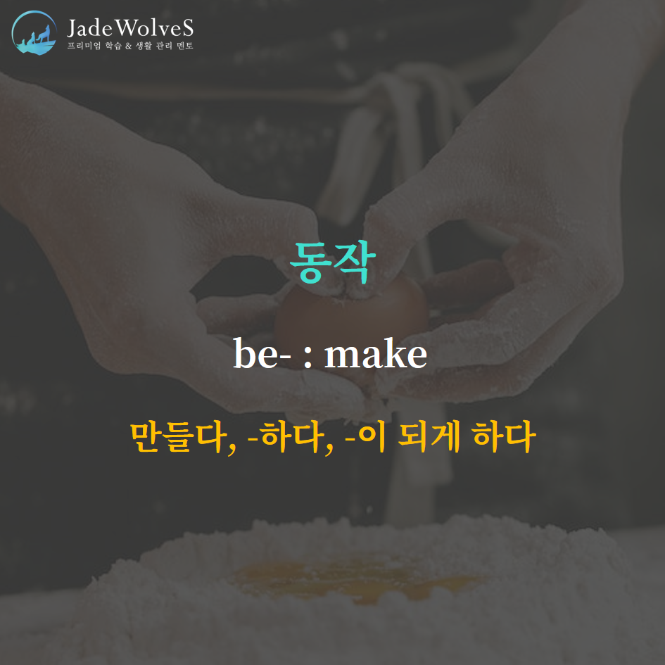 be-는 "make : 만들다, -하다, -이 되게 하다"라는 의미로 동작을 나타냅니다.