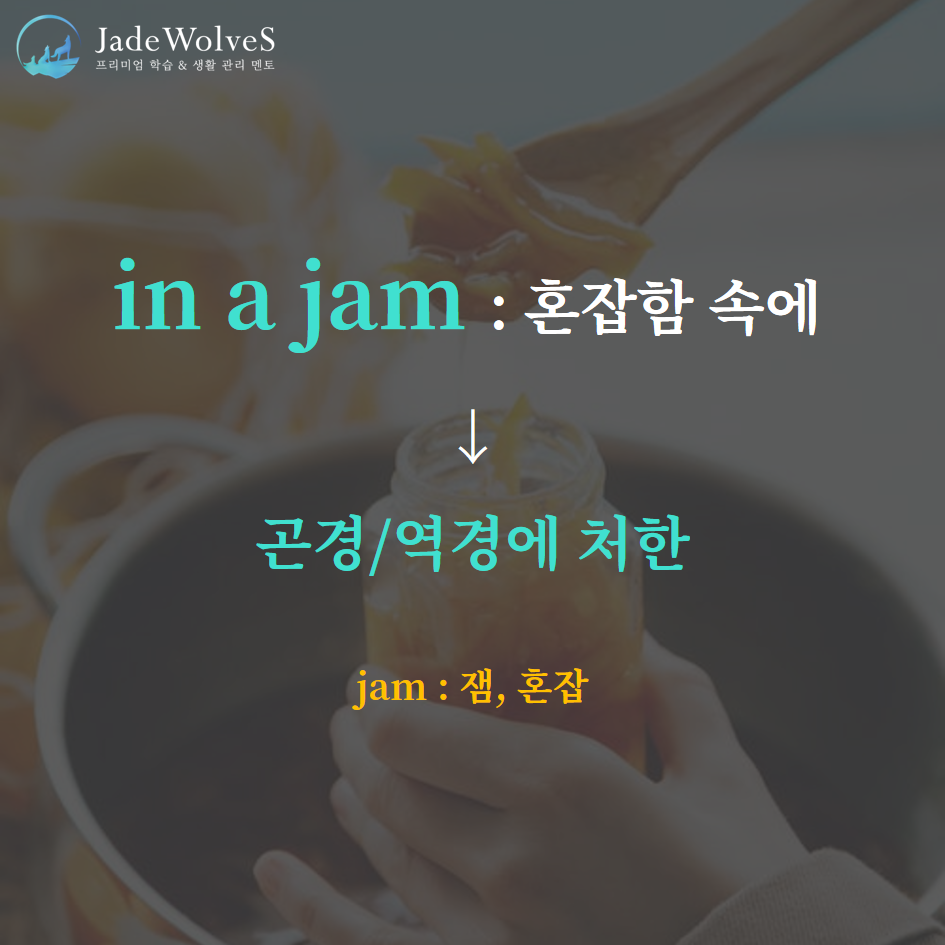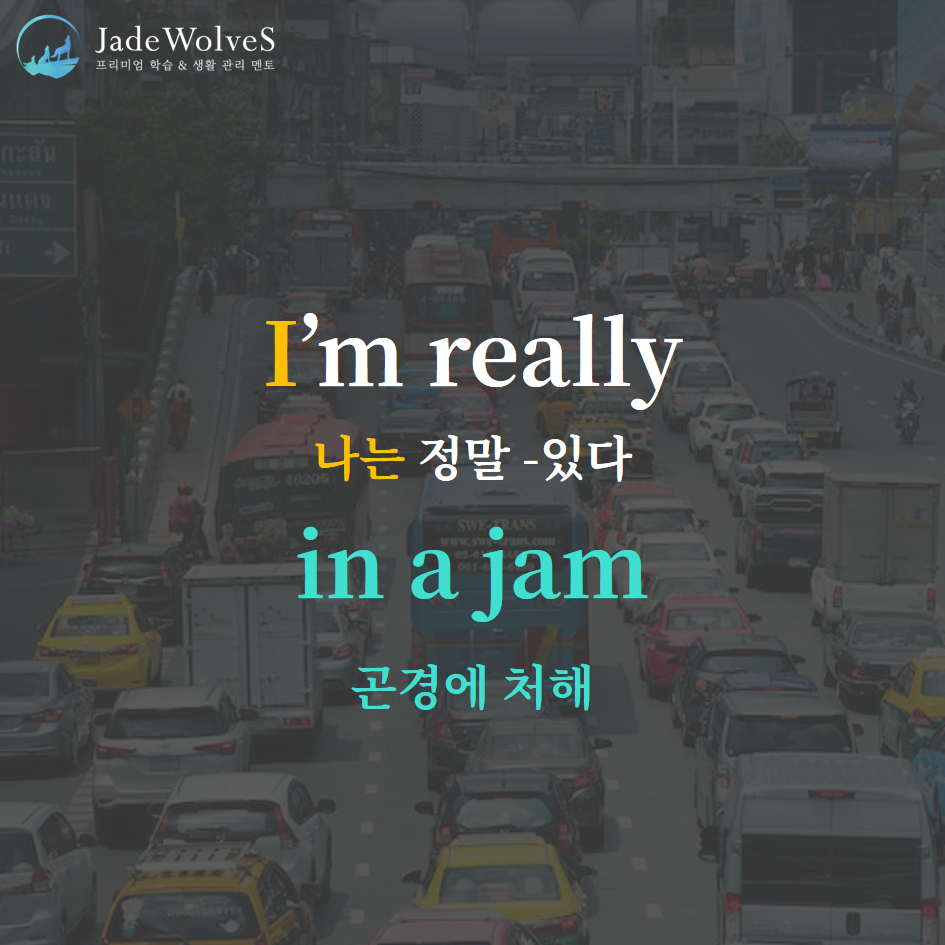 1) in a jam : "혼잡함 속에"라고 해서 "곤경/역경에 처한"이라는 의미로 사용됩니다.