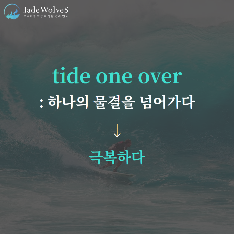 2) tide one over : "하나의 물결을 넘어가다"라고 해서 "극복하다"라는 의미로 사용됩니다.