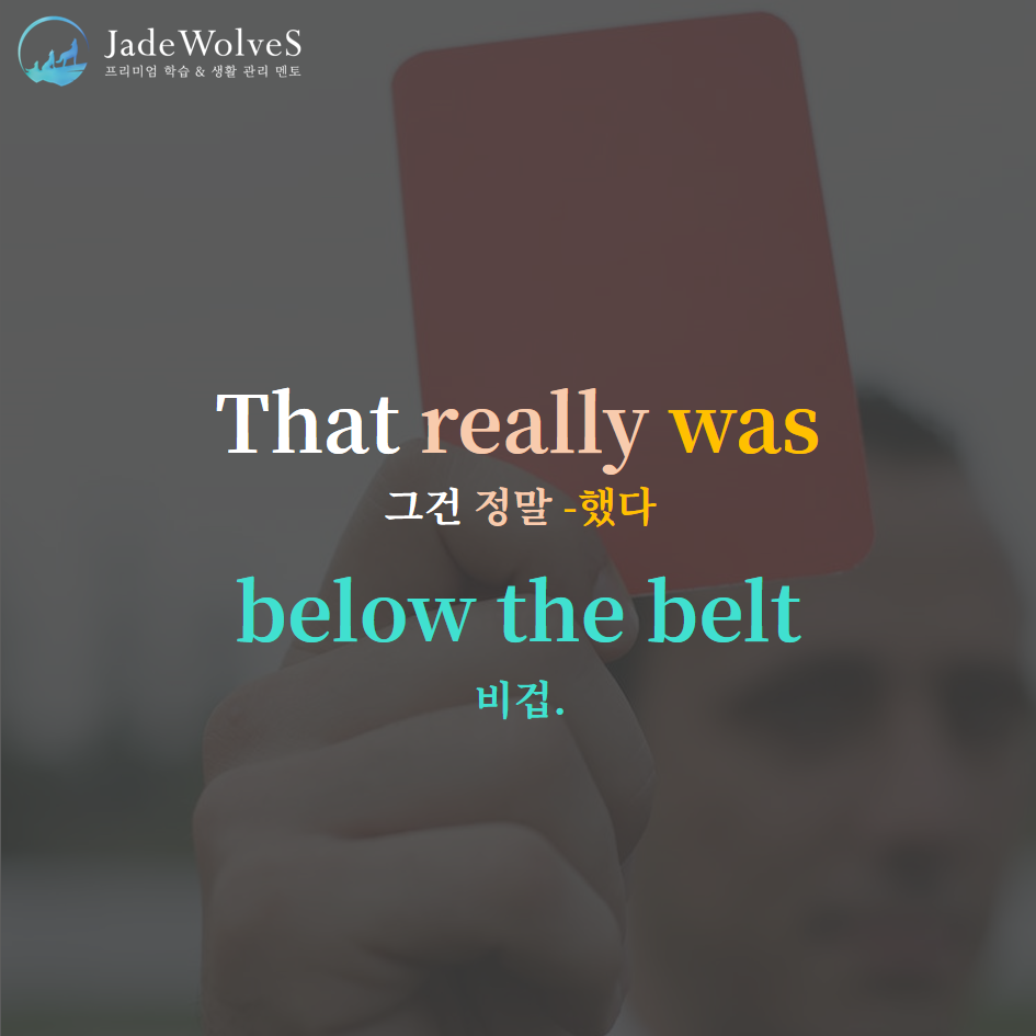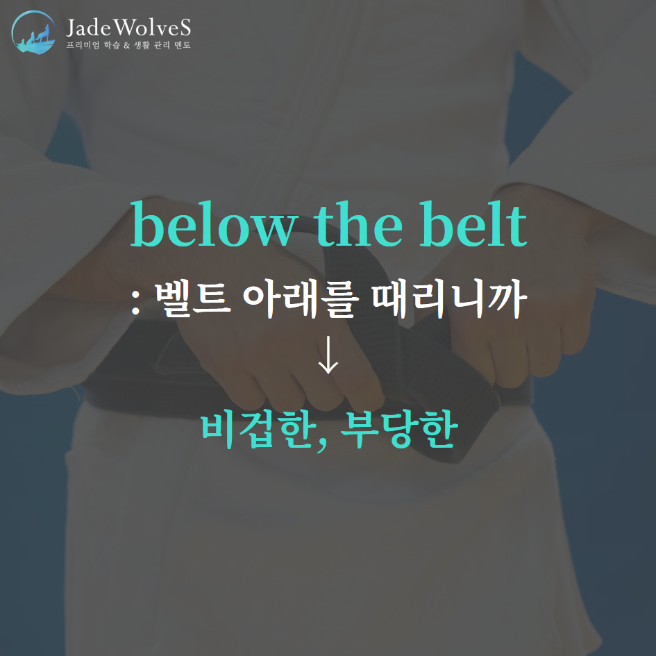 2) below the belt : "벨트 아래를 때리니까"라고 해서 "비겁한, 부당한"이라는 의미로 사용됩니다.