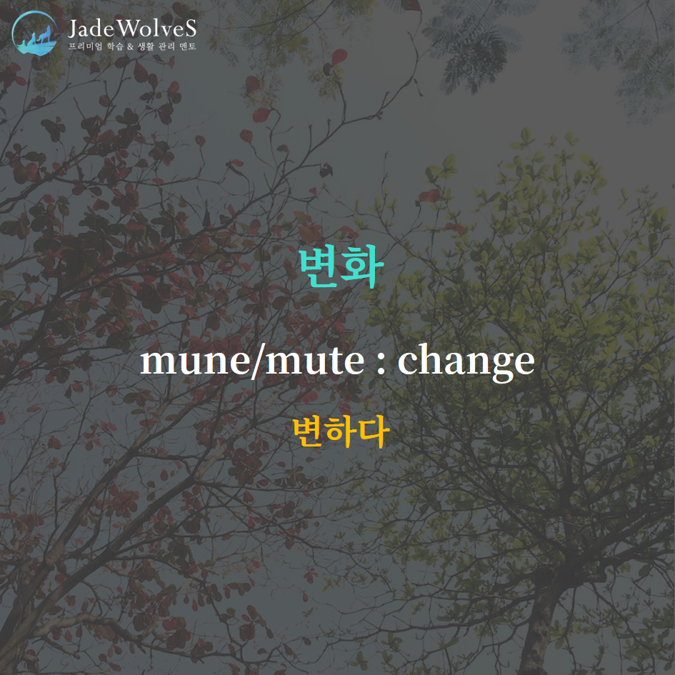 여러분이 알고 있는 단어 중 변화를 나타내는 mune/mute 가 들어가는 단어는 무엇이 있나요?