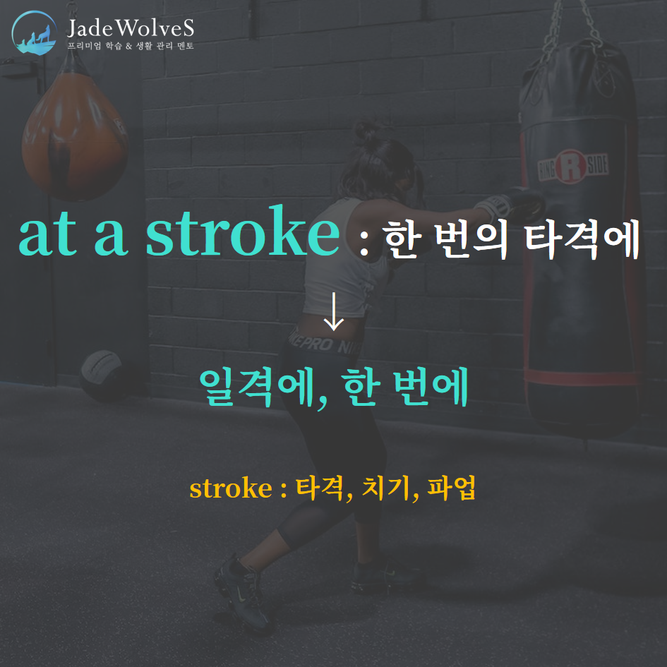 1) at a stroke : "한 번의 타격에"라고 해서 "일격에, 한 번에"라는 의미로 사용됩니다.