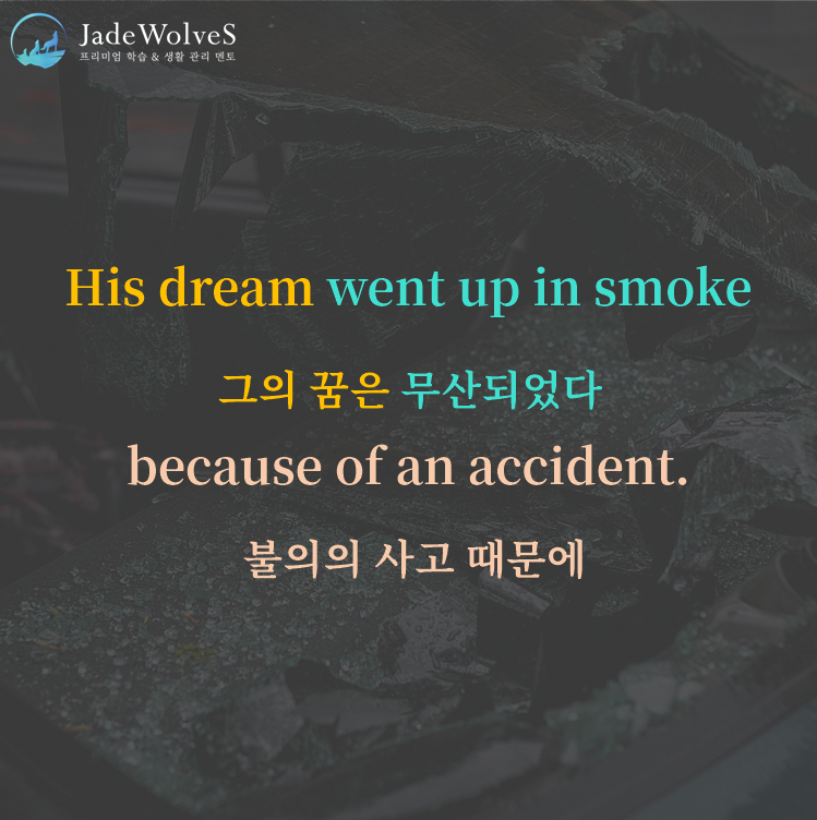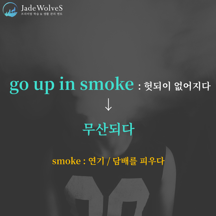1) go up in smoke : "헛되이 없어지다"라고 해서 "무산되다"라는 의미로 사용됩니다.