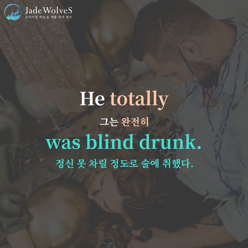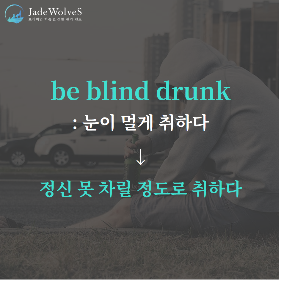 2) be blind drunk : "눈이 멀게 취하다"라고 해서 "정신 못차릴 정도로 취하다"라는 의미로 사용됩니다.