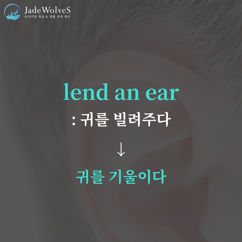 1) lend an ear : "귀를 빌려주다"라고 해서 "귀를 기울이다"라는 의미로 사용됩니다.