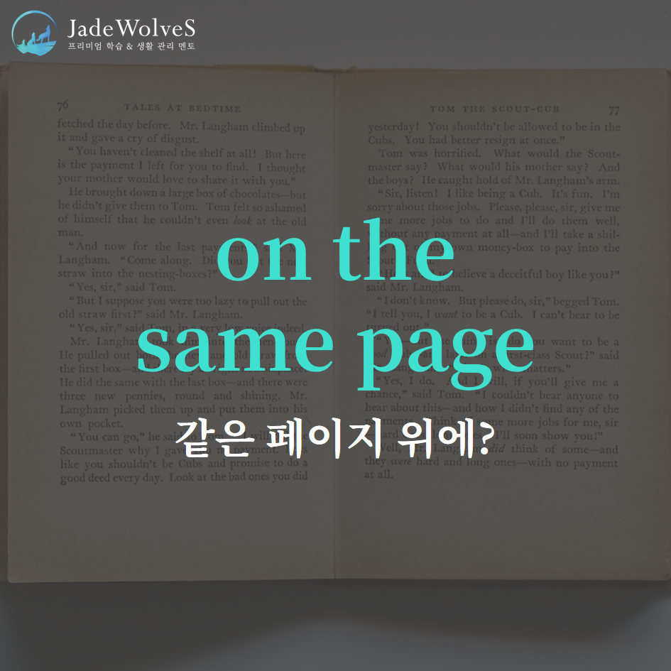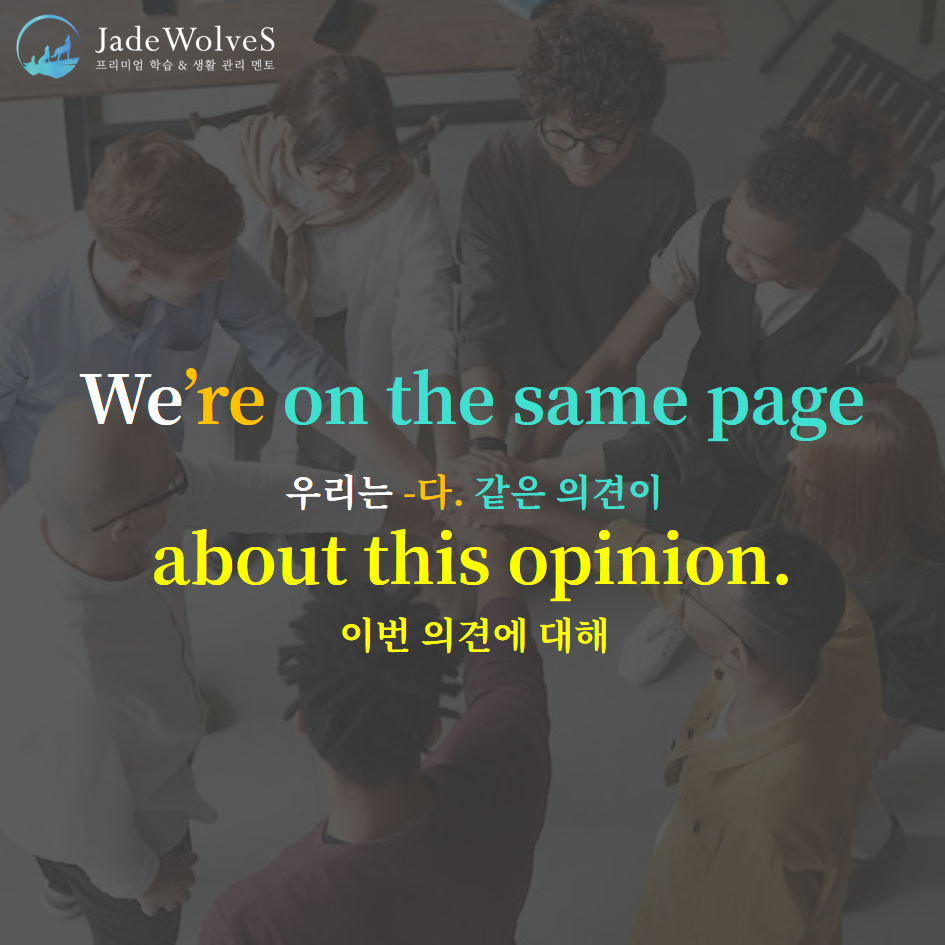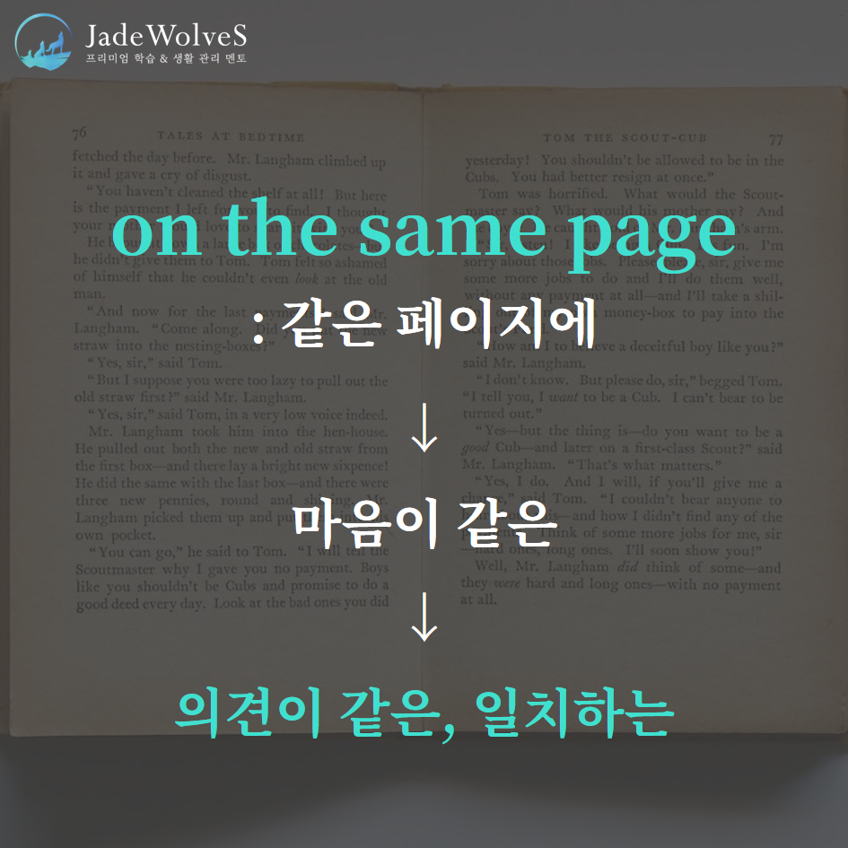 1) on the same page : "같은 페이지에"라고 해서 "의견이 같은, 일치하는"이라는 의미로 사용됩니다.
