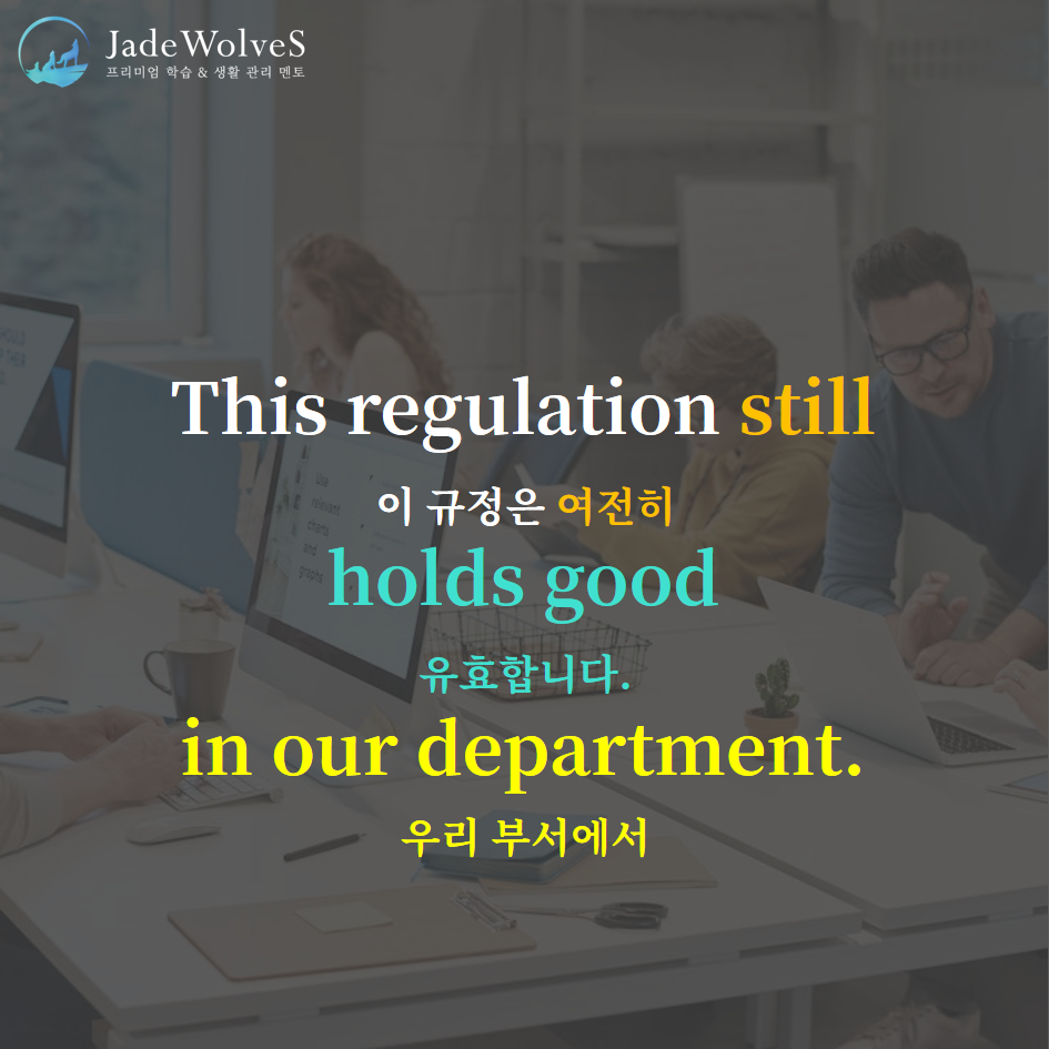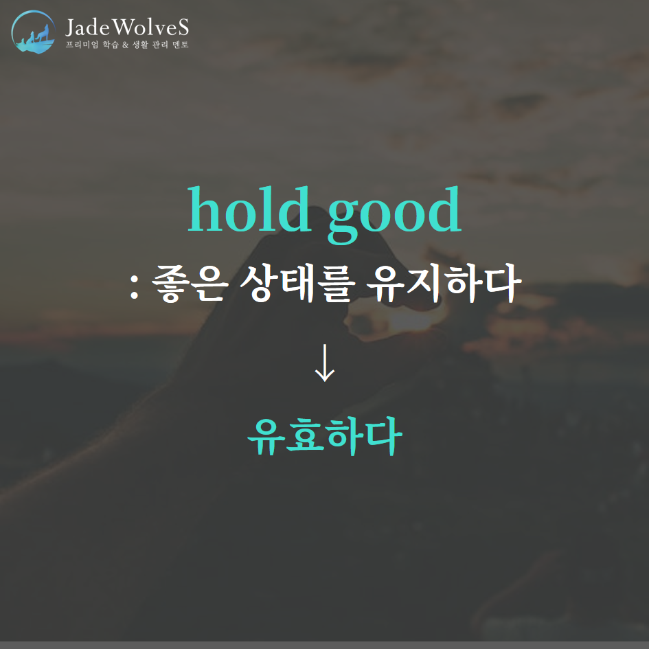 2) hold good : "좋은 상태를 유지하다"라고 해서 "유효하다"라는 의미로 사용됩니다.