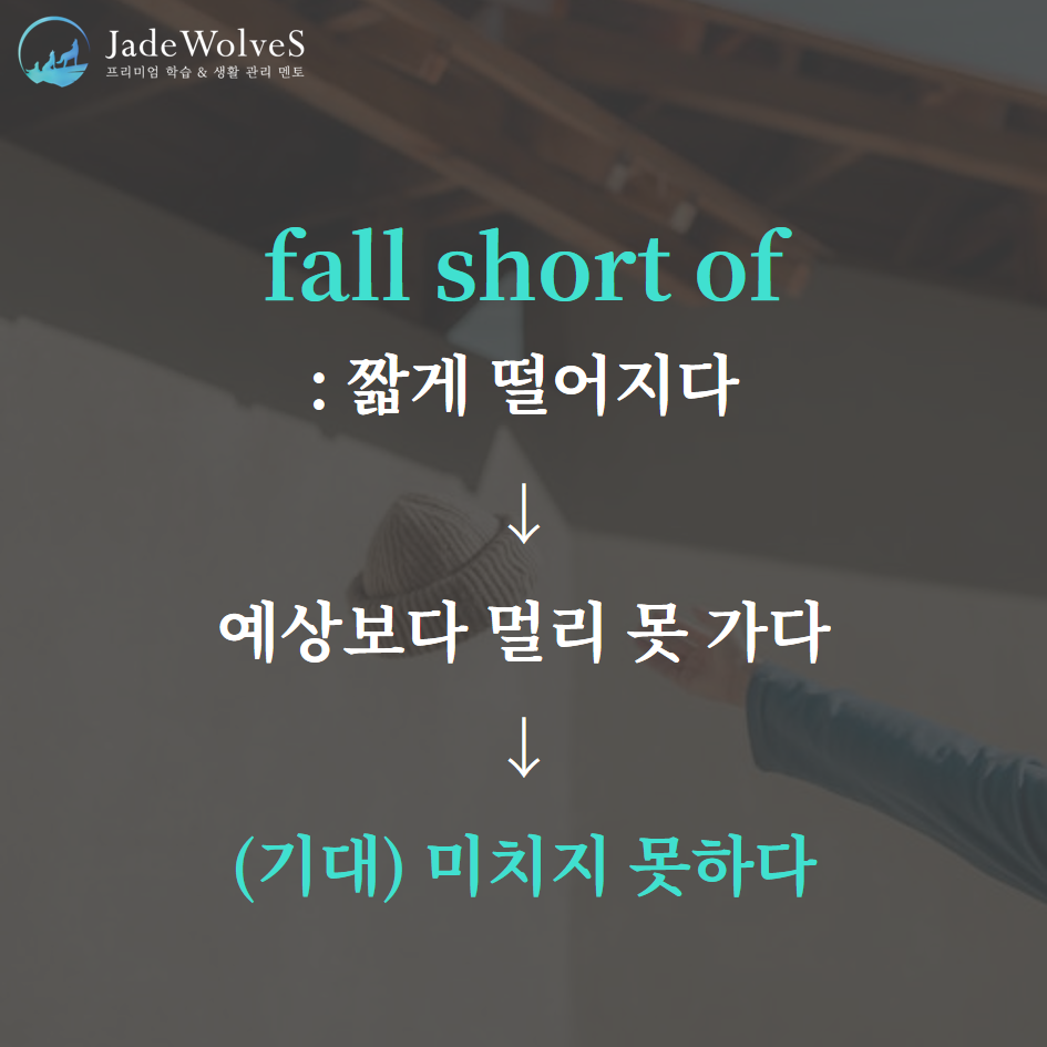 2) fall short of : "짧게 떨어지다"라고 해서 "(기대)미치지 못하다"라는 의미로 사용됩니다.