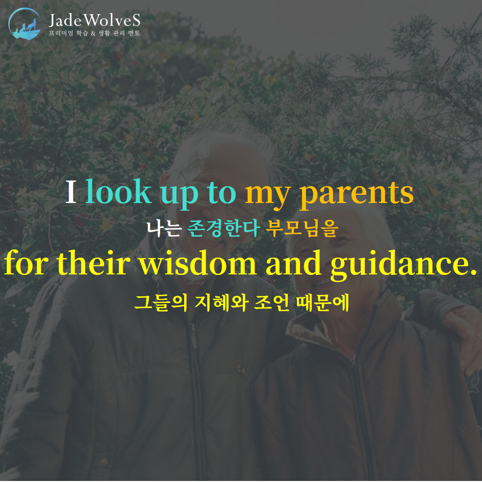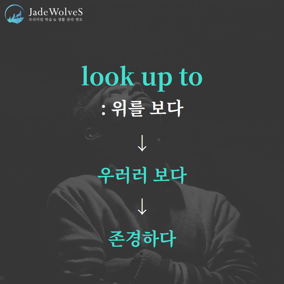 1) look up to : "위를 보다"라고 해서 "존경하다"라는 의미로 사용됩니다.