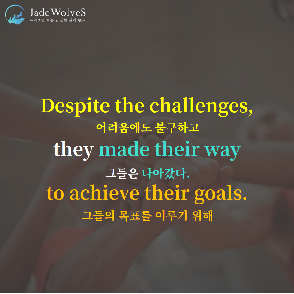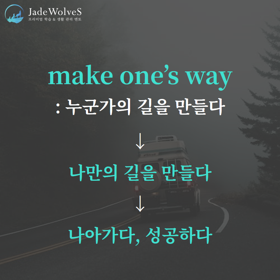 2) make one's way : "누군가의 길을 만들다"라고 해서 "나아가다, 성공하다"라는 의미로 사용됩니다.