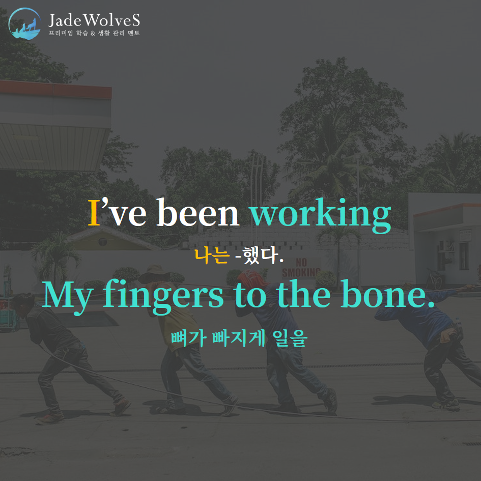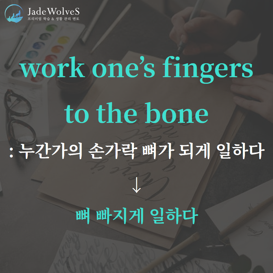 2) work one's fingers to the bone : "누군가의 손가락 뼈가 되게 일하다"라고 해서 "뼈 빠지게 일하다"라는 의미로 사용됩니다.