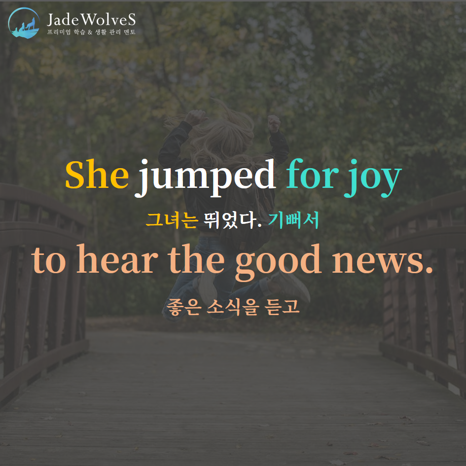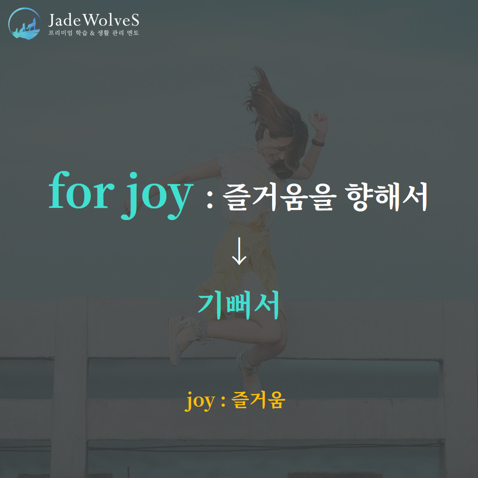 1) for joy : "즐거움을 향해서"라고 해서 "기뻐서"라는 의미로 사용됩니다.