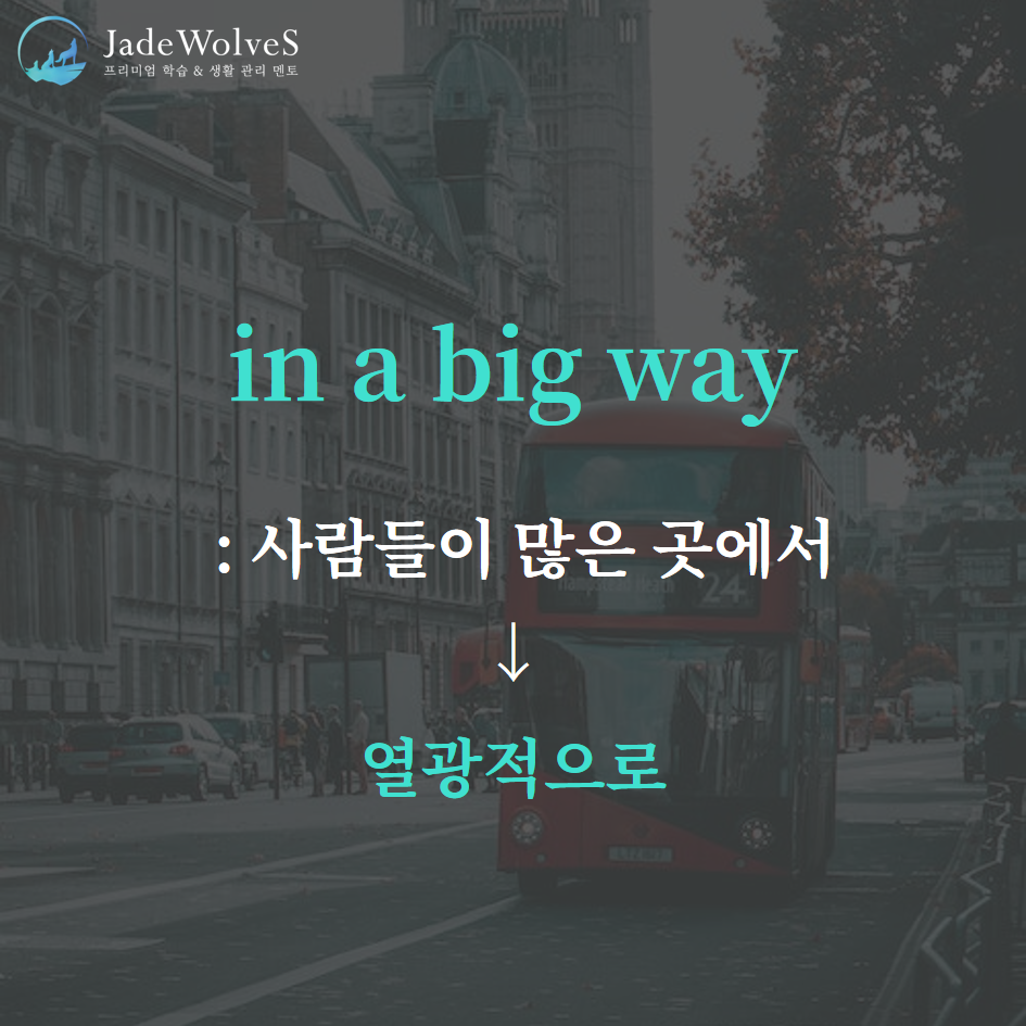 1) in a big way : "사람들이 많은 곳에서"라고 해서 "열광적으로"라는 의미로 사용됩니다.