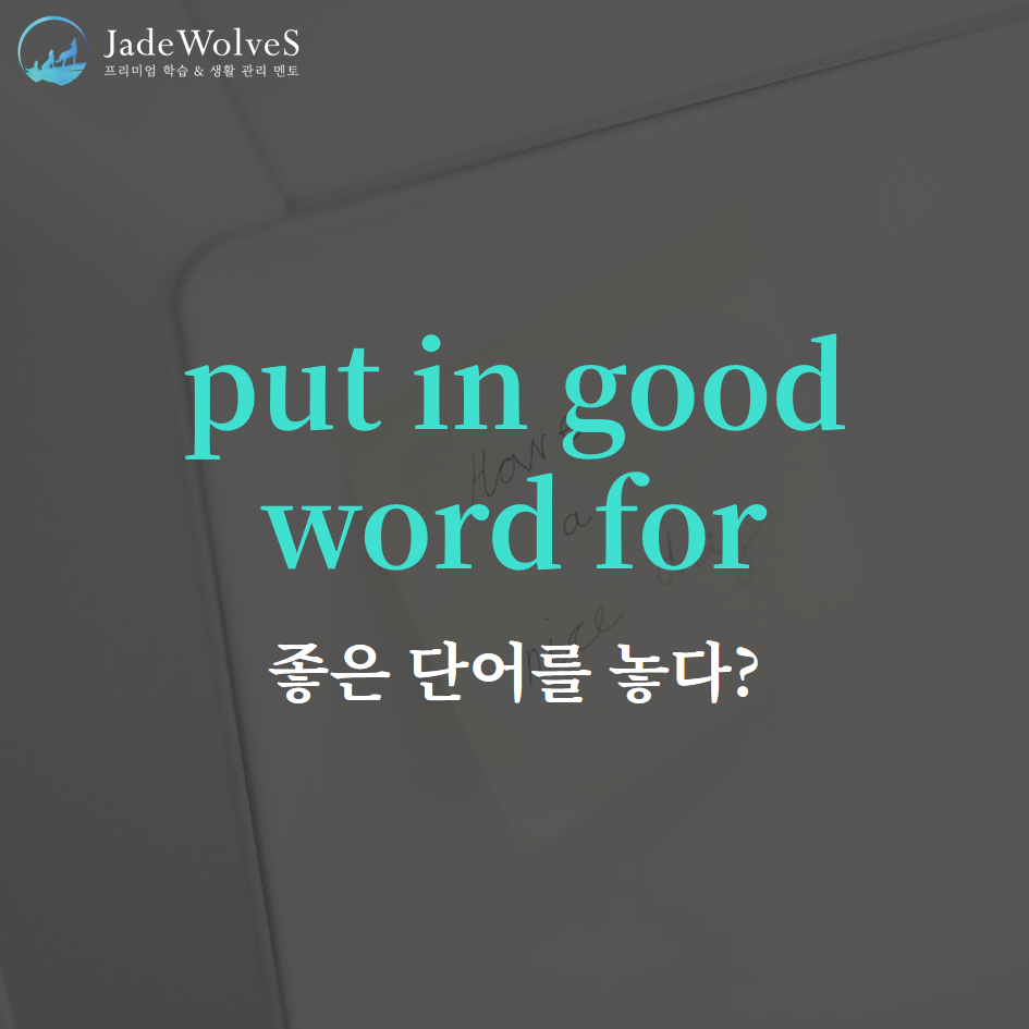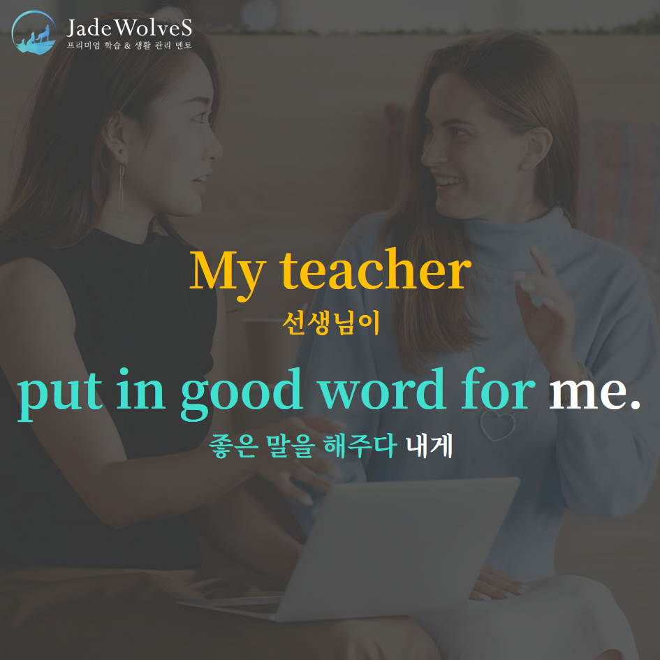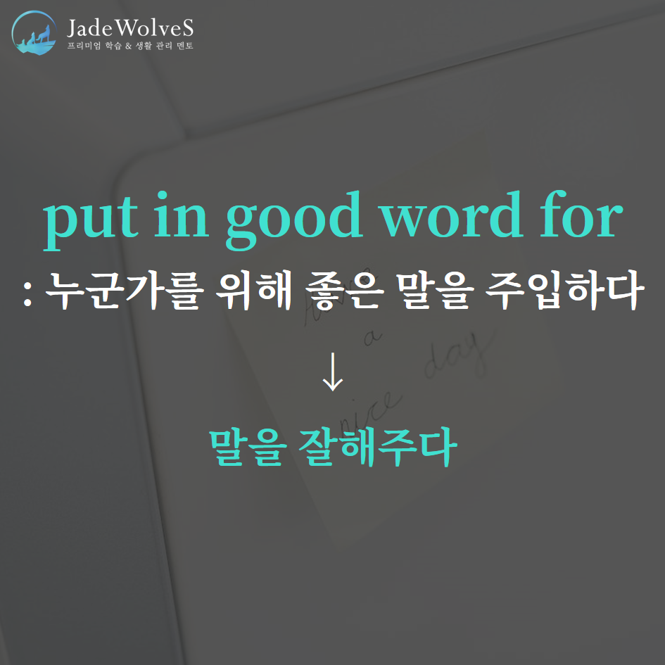 2) put in good word for : "누군가를 위해 좋은 말을 주입하다"라고 해서 "말을 잘해주다"라는 의미로 사용됩니다.