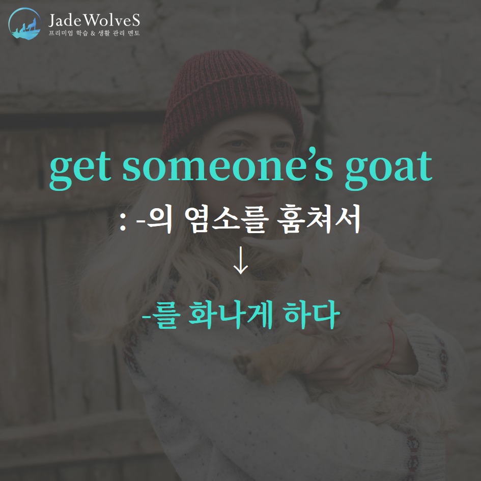 2) get someone's goat : "~의 염소를 훔쳐서"라고 해서 "~를 화나게 하다"라는 의미로 사용됩니다.