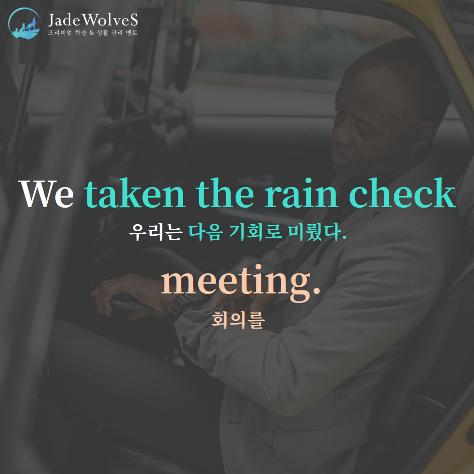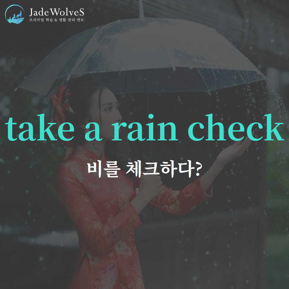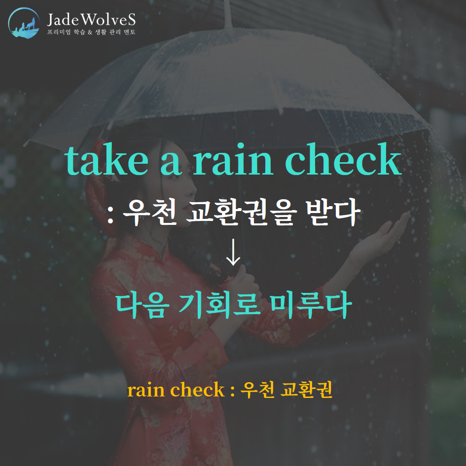 1) take a rain check : "우천 교환권을 받다"라고 해서 "다음 기회로 미루다"라는 의미로 사용됩니다.
