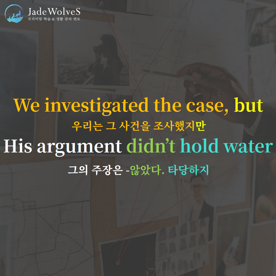 1) hold water : "물을 잠그다"라고 해서 "타당하다, 이치에 맞다"라는 의미로 사용됩니다.