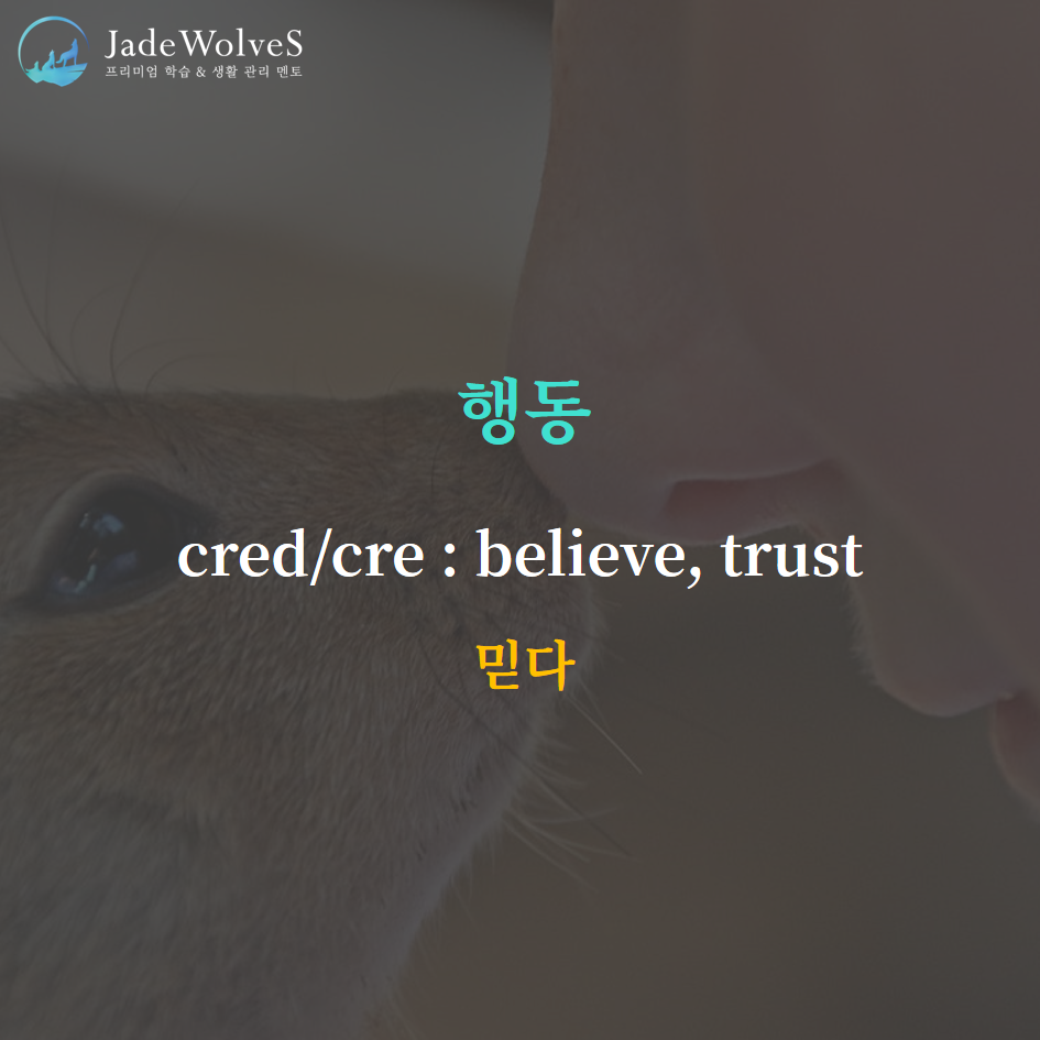 "cred/cre : 믿다"라는 의미로 행동을 나타냅니다.