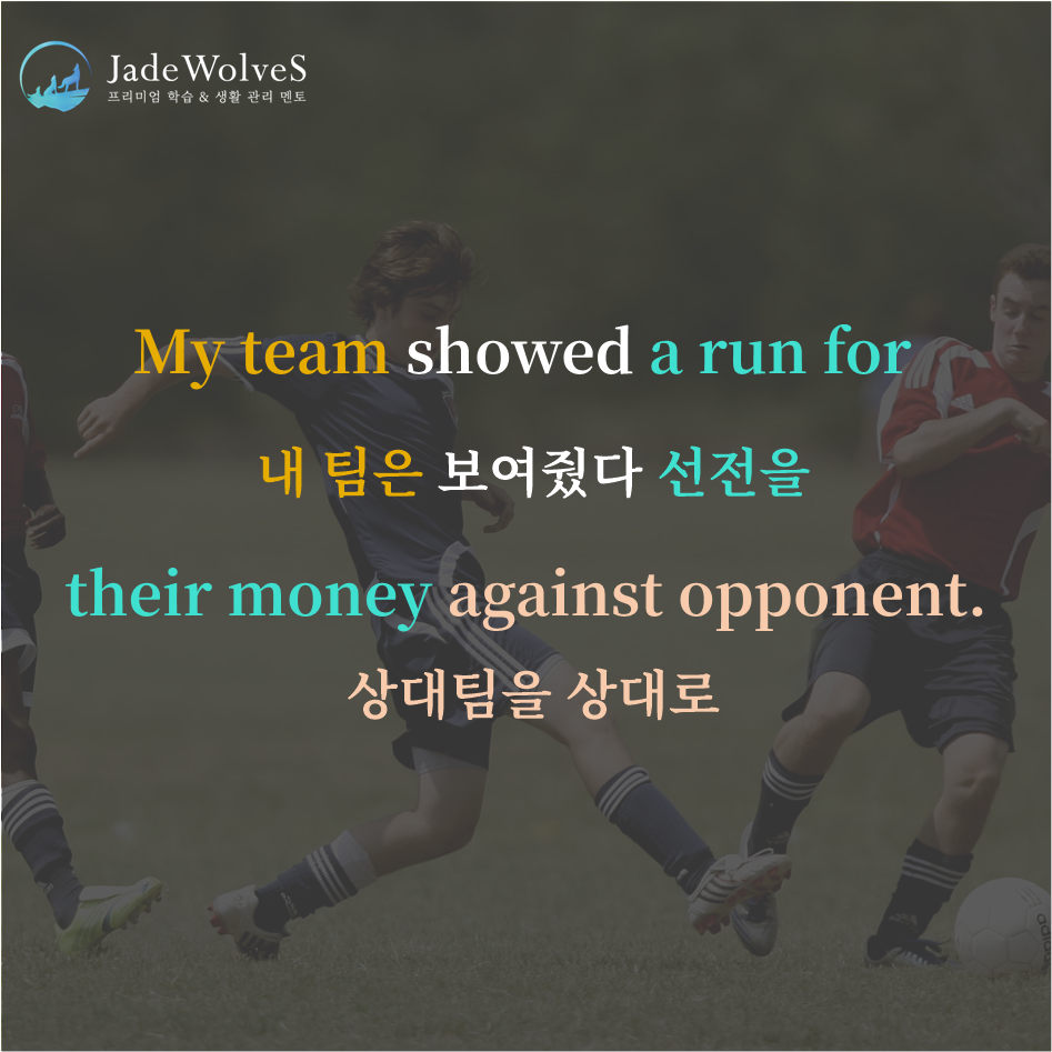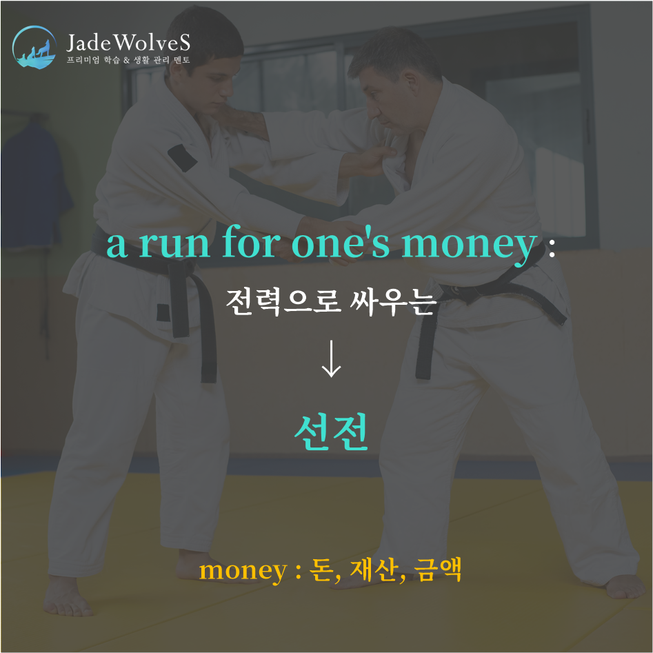 1) a run for one's money : "전력으로 싸우는"이라고 해서 "선전"이라는 의미로 사용됩니다.