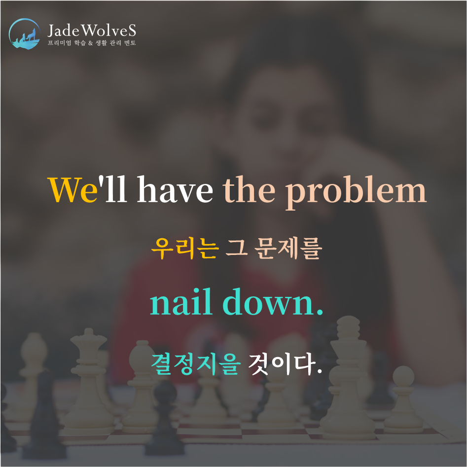 2) nail down : "아래로 못박다"라고 해서 "결정짓다"라는 의미로 사용됩니다.