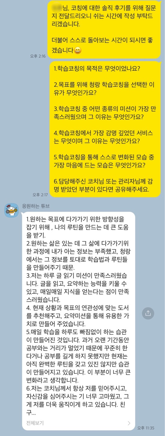 청랑 학습 코칭 24년 성인F 고객 감동 후기