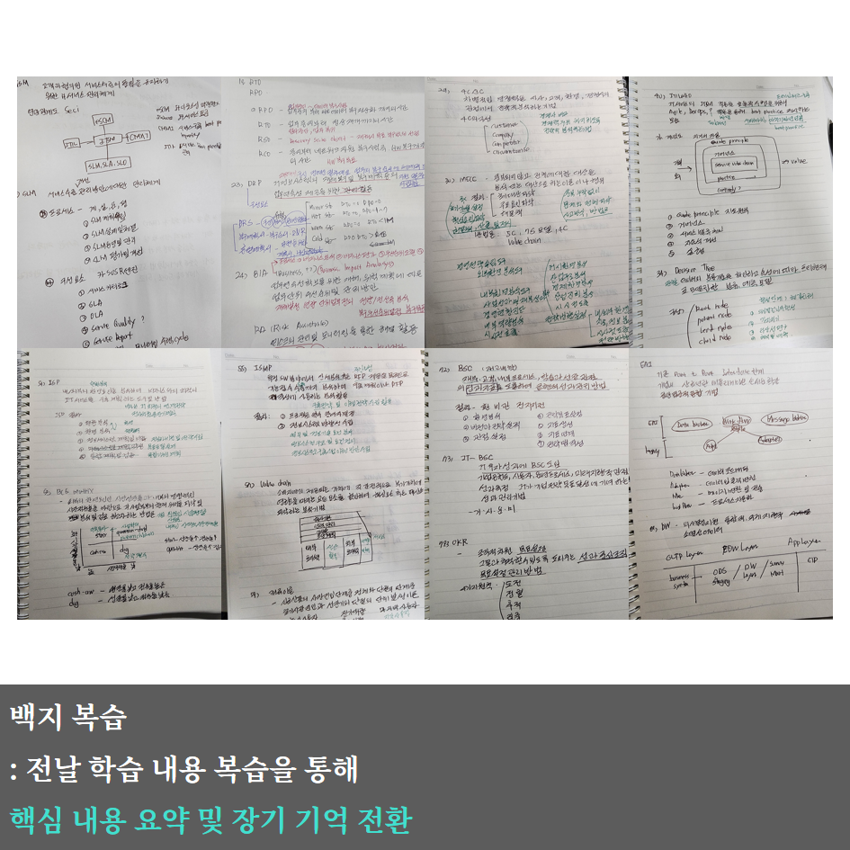 규칙적인 학습량 유지와 핵심 파악 및 본인만의 학습 구조 정리를 위해 인강 3개&노트 정리(30분 제한)