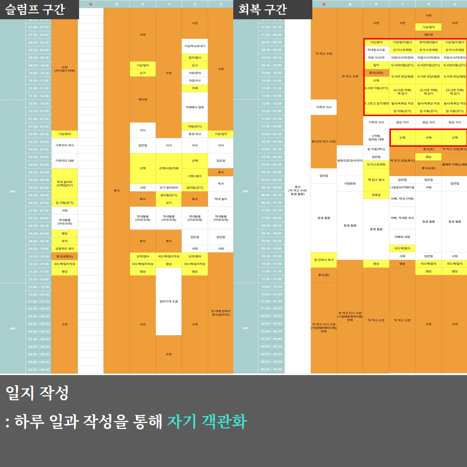 규칙적인 신체 리듬을 만들기 위해 기상 미션(7시 기상, 23시 수면)과