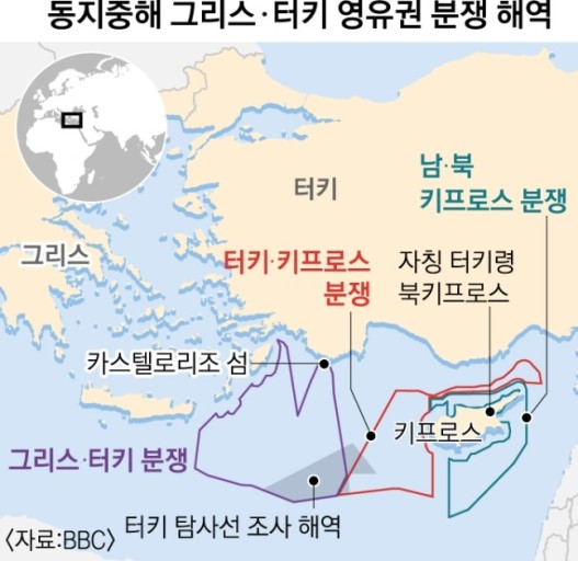 키프로스 섬을 두고 대립한 그리스와 튀르키예