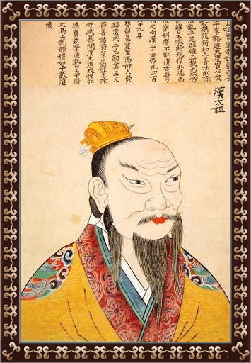 중국 한()나라의 제1대 황제 유방(劉邦, 재위 BC 202~BC 195). 그는 젊은 시절 술과 여색을 밝히는 건달이었다. 그러나 진()나라 타도를 목적으로 반란이 일어나자 유방은 주변에 세력을 모아 항량(項梁) ·항우(項羽)의 군대와 연합세력을 구축하였다. 그 뒤 항우의 군대가 동쪽에서 진군(秦軍)의 주력부대와 결전을 벌이는 사이, 유방은 수도로 진격하여 항우보다 앞서 진나라 수도를 함락시켰다. 항우가 이 일을 계기로 유방을 죽일 목적으로 '홍문(鴻門)의 회()'에 불렀다. 그러나 부하인 장량(張良)과 번쾌(樊噲)의 도움으로 목숨을 보전한 유방은 훗날을 기약하며 줄행랑을 친다. 이후 유방은 힘을 키워 항우를 죽이고 한나라를 세우게 되었다.