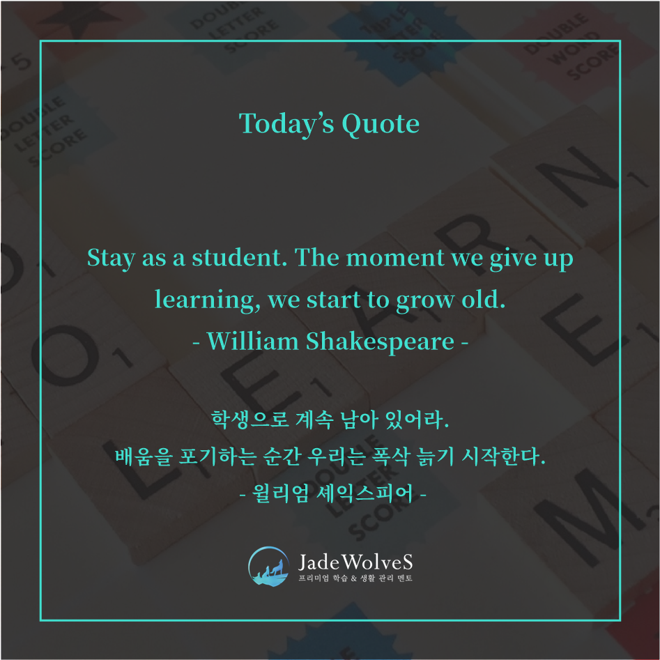 나이가 들수록 배움이 어려워지는 것이 아니라, 배움을 포기하는 순간 비로소 우리가 늙어가는 것입니다.