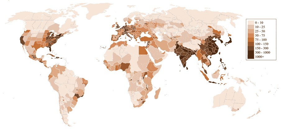 고대 인류 문명의 발상지에는 한 가지 공통점이 있다. 바로 큰 강을 끼고 있다. 위의 표에서도 보여주듯이 지금도 4대 문명의 발상지(황하, 메소포타미아, 인더스, 이집트)는 인구밀도가 높다. 현대 문명의 대도시들도 큰 강을 끼고 성장해오고 있다. 종합하자면 기후가 온난하면서 물(용수)을 쉽게 얻을 수 있고 낮고 평평한 곳에 있어 의식주 해결이 쉬워야 한다. 이런 곳에서는 사람이 많이 모여 살기 때문에 활발한 경제행위가 펼쳐져 의식주 해결이 쉽다.