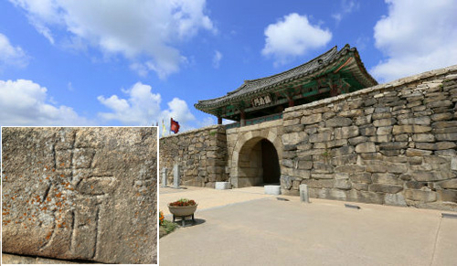 충남 서산시 해미읍성 진남문과 충주 지명이 새겨진 각자석