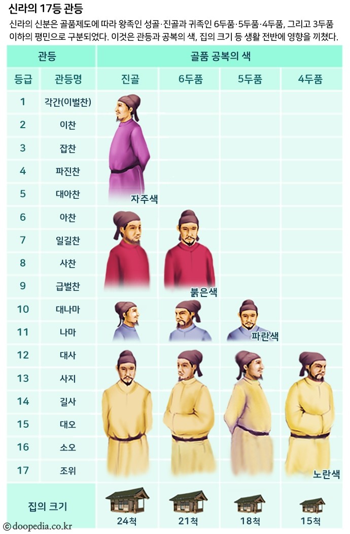 신라 골품제 신분에 따라 관직과 재산을 소유하는 부분도 정해져 있었다. 출처:두피디아