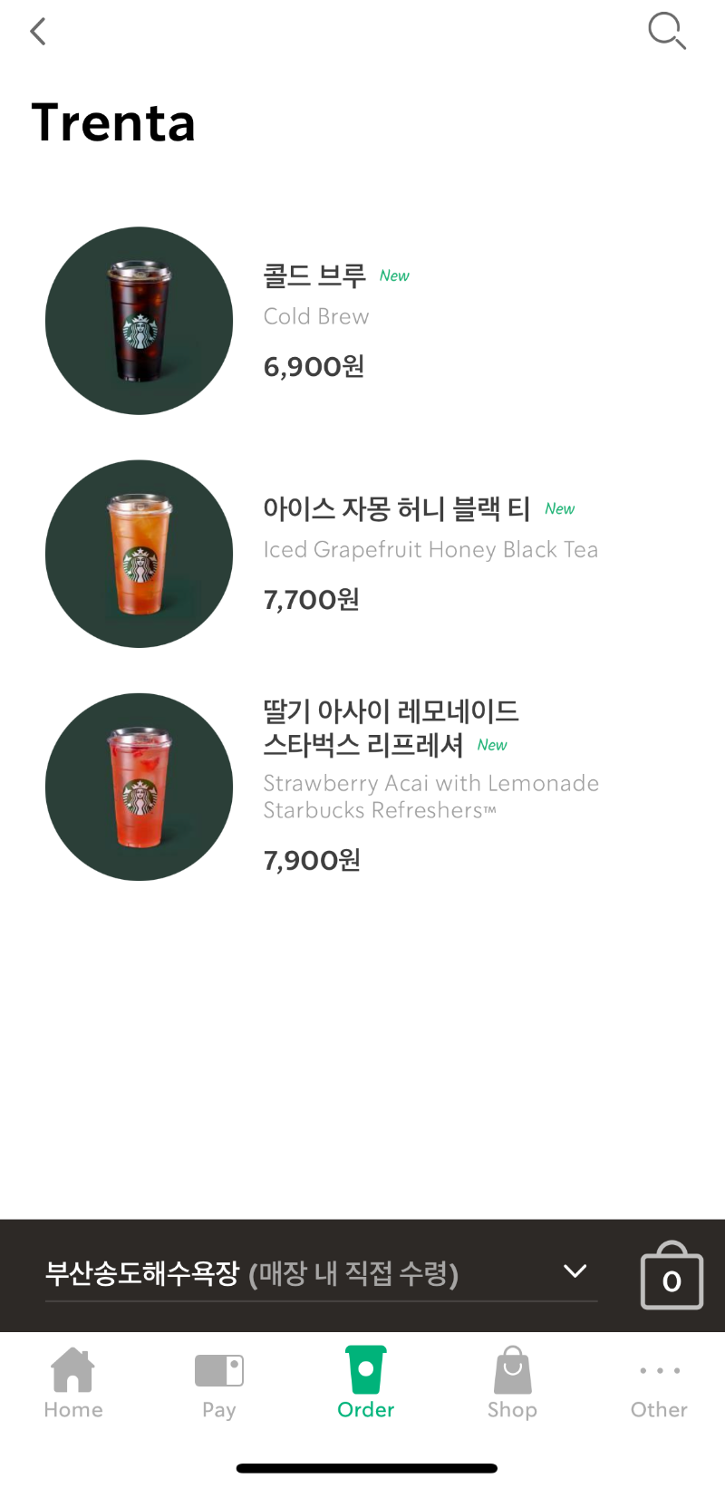 스타벅스 앱 사이렌오더에 들어가면 친절히 맨 상단에 표시 #트렌타, 가격은 한잔에 6,900원~ 7,900원까지!