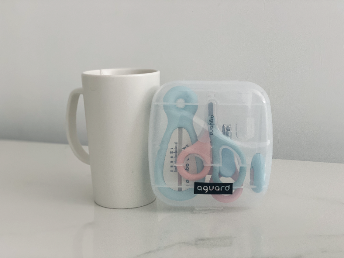 탕 온도계, 신생아용 손톱 가위, 유아용 손톱깎이, 핀셋, LED 귀이개, 실리콘 칫솔로 총 6개 제품이 세트로 구성되어 있다.